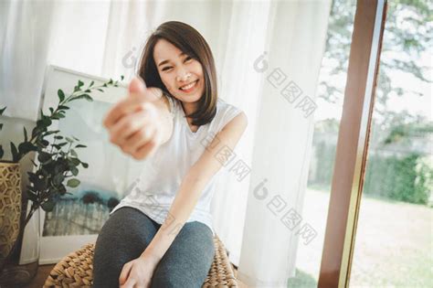 快乐的亚洲女人微笑着微笑着微笑着微笑着坐图片-包图网企业站
