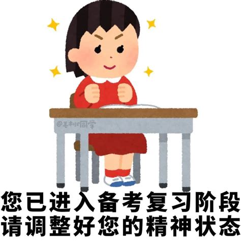 可爱女孩坐桌前握拳,配文“您已进入备考复习阶段请调