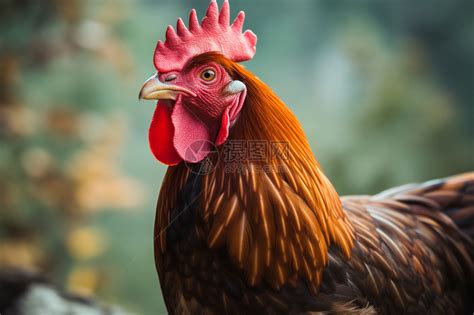动物摄影AI数字艺术-鸡自然写实棕色羽毛红色鸡冠成年鸡站立平静表情商业照片-A…