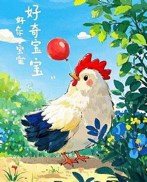 描绘了一只头顶红色鸡冠表情疑惑的Q版的素