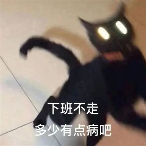 黑猫表情狰狞,配文“下班不走 多少有点病吧”的搞笑表情