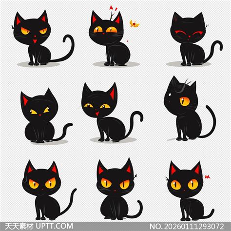 九款黑猫表情包免抠插画元素-天天素材库图片素材