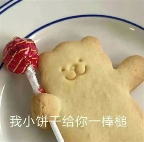 可爱小熊饼干手拿棒棒糖,配文“我小饼干给你一