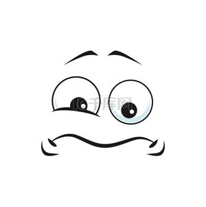 不快乐的悲伤表情符号与弯曲的微笑孤立