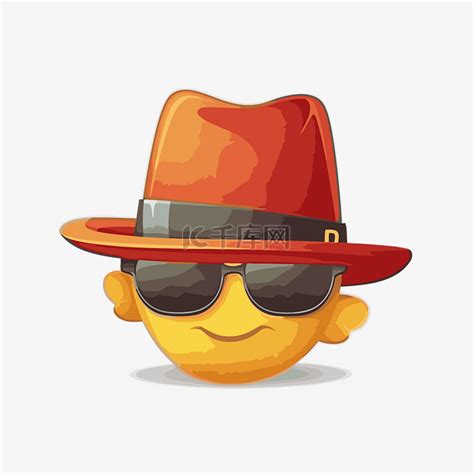 软呢帽剪贴画红色帽子戴着表情符号与太阳镜和帽