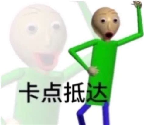 抽象小绿人表情包 绿色卡通人物兴奋姿势,配文“卡点抵达”的有