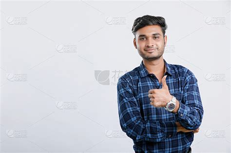 年轻的印度大学生在白色背景上展示表情