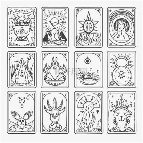 塔罗牌和符号线描插图轮廓草图 向量素材图片免费