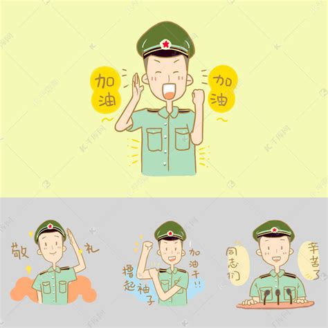可爱小军人表情包当兵光荣元素素材下载-正版素材4014…