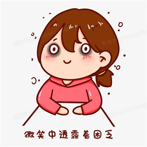 卡通手绘微笑中透露着困乏表情包元素PNG图片