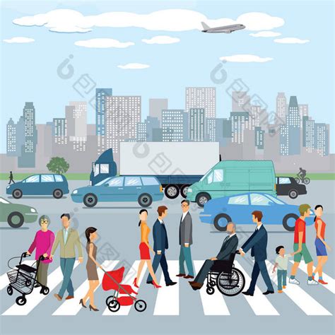 在市人行横道上行走的人插图图片-包图网企业站