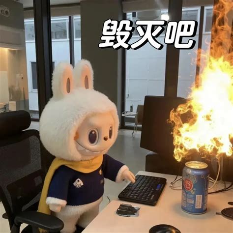 兔子玩偶办公遇电脑着火,喊“毁灭吧”摆烂崩溃