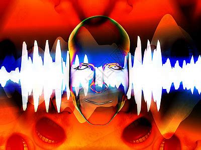 以嘴和声波面对嘴巴眼睛情感图形化音乐幸福概念声波波动电子高清