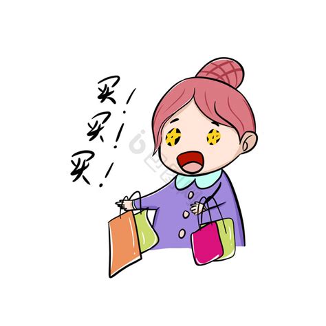 表情买单购物女士插画素材图买买买表情包-买买买表情包模板图片-包图网