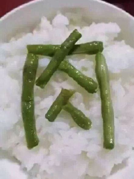 吃肉 搞笑创意:用豆角在米饭上拼出“肉”
