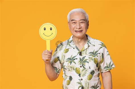 拿着笑脸表情包的老爷爷高清图片下载-正版图片501732743-摄图网