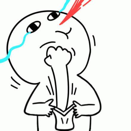 揍死你 卡通人物表情痛苦,一手捂嘴一手扯衣领…
