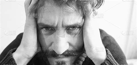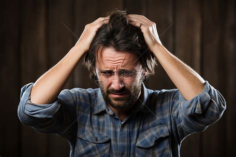 一个人带着痛苦的表情用手挤压着他的头