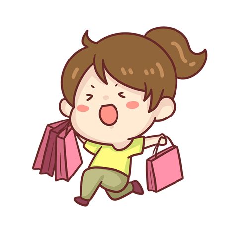 女孩购物买买买表情包PNG图片素材下载_表