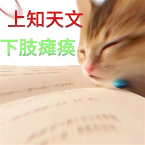 猫咪闭眼趴书上,配文“上知天文 下肢瘫痪”,